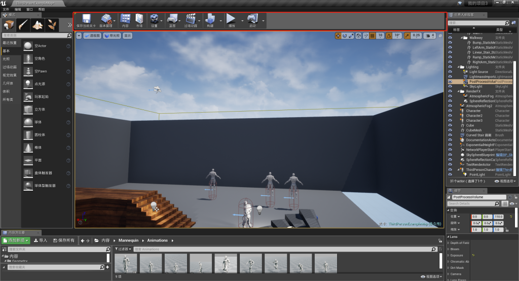 “主工具栏”位于UE编辑器顶部,主要用于快速调整项目,可用于创建对象创建和具体场景创建以外的项目操作。