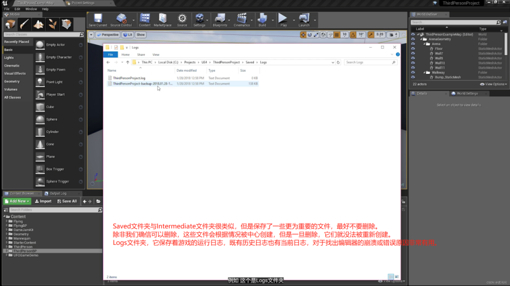 Logs文件夹,它保存着游戏的运行日志,既有历史日志也有当前日志,对于找出编辑器的崩溃或错误原因非常有用。